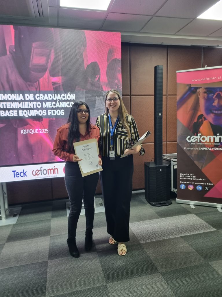 En la ciudad de Iquique se realizó el hito de cierre del curso Mantenimiento Mecánico Base de Equipos Fijos, programa ejecutado por CEFOMIN, patrocinado por Minera Teck Quebrada Blanca y coordinado junto a OTIC SOFOFA, el cual permitió certificar a 23 mujeres tras un proceso formativo de 320 horas de capacitación.