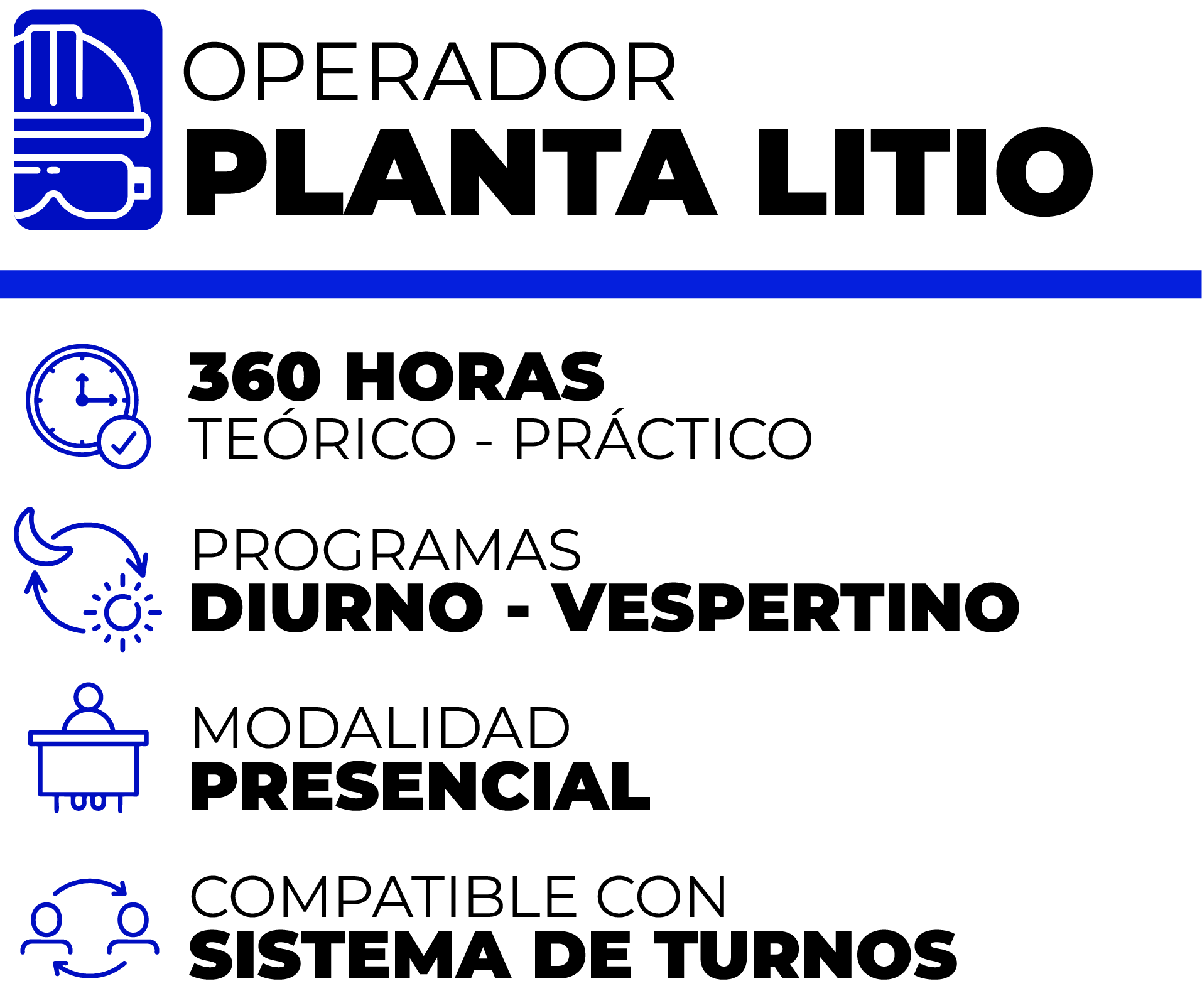 En CEFOMIN nos ocupamos de entregar formación de capital humano de excelencia; por ello, cada día es un nuevo desafío. Nuestra Escuela de Oficios 2026 tiene para ti todo lo que necesitas y ansías, para dar ese gran salto en tu carrera laboral; los programas de Operador Base Planta de Litio, Mantenedor Mecánico Base Equipos Móviles y Mantenedor Mecánico Base Equipos Fijos son tres alternativas a tu alcance, que optimizan tu tiempo y dinero.